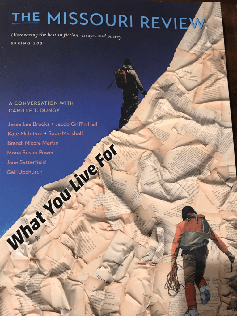 I have a story in the Spring 2021 issue of The Missouri Review titled “The Burning,” and I’m loving every minute of it. You know, it’s hard getting published in curated literary journals. So many stars have to align— an editor has to make a case for why your story should be included. Many thanks to Associate Editor Evelyn Somers who took a chance on my little story about the ways intimacy can mediate the devastating effects of loss. And for seeing value in Black characters.